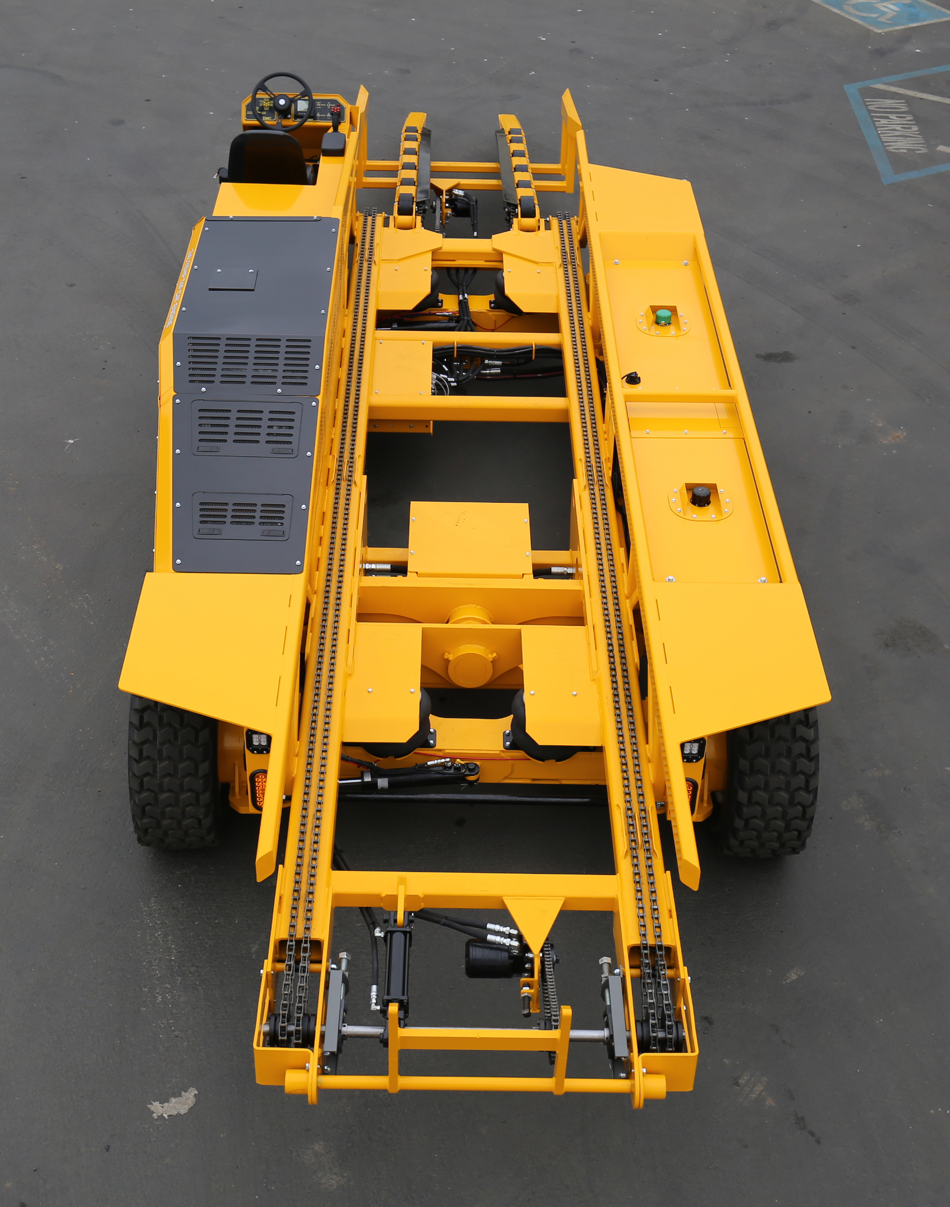 The Aftershock AR-7 Bin Carrier affords the operator smooth and efficient handling of products collected in bins. When bins are deposited in the orchard full and ready for pick-up, the AR-7 Bin Carrier glides through to pick them up and bring them to the collection point.