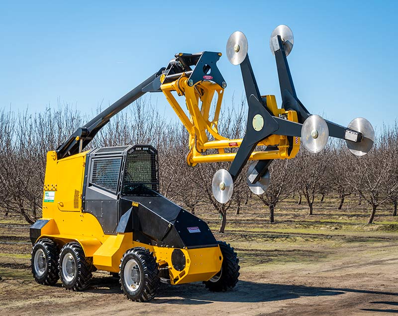 The HDR1100N T4 was designed to meet the growing demand for a dual boom, topper hedger able to hedge as narrow as 2 feet. The unique design of the machine allows each boom to be moved independently of each other making the HDR1100N T4 one of our most versatile and productive machines to date. The “walking beam” rear axle of the HDR1100N T4 provides a stable ride over berms when cross hedging. The narrow power unit with its low profile tires provide for efficient hedging in the tightest planted orchards.